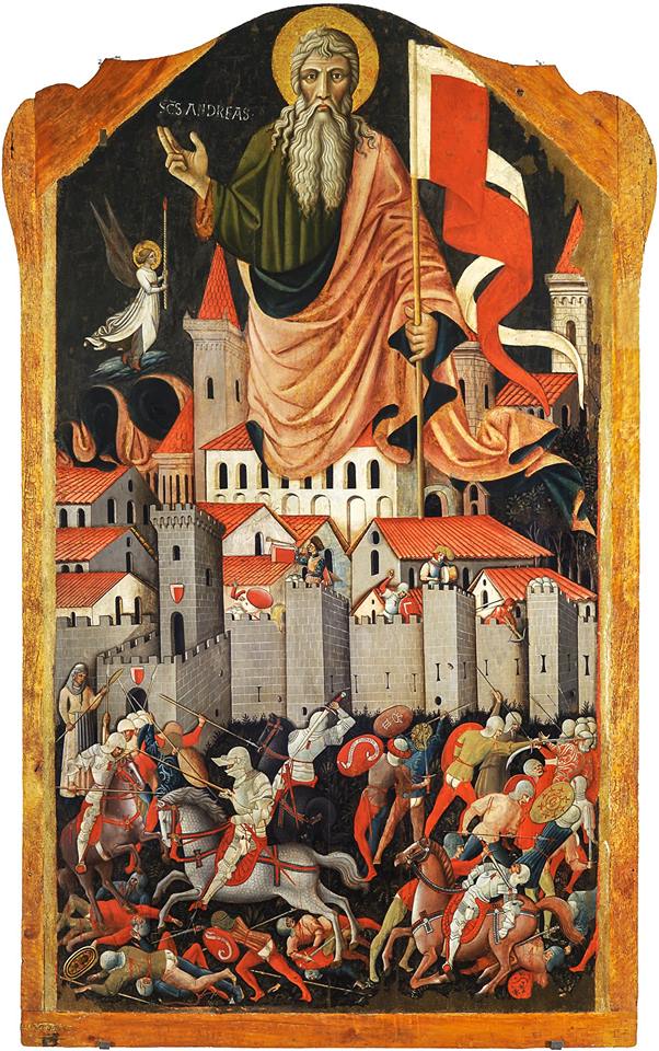 Un'immagine della splendida tavola di Nicola di Ulisse da Siena, raffigurante "La Battaglia tra Ginesini e Fermani", conosciuta anche come la "Fornarina".