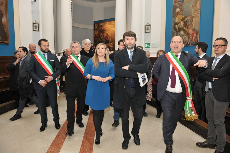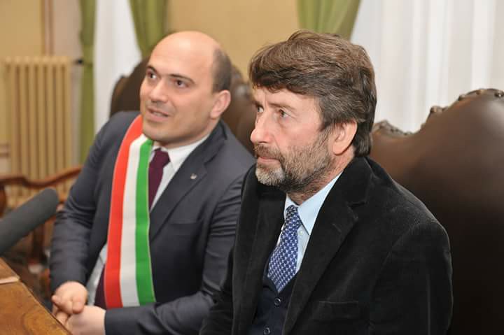 Daniela Tisi, direttrice della Rete Museale dei Sibillini, il ministro Franceschini e il sindaco Pugnaloni.