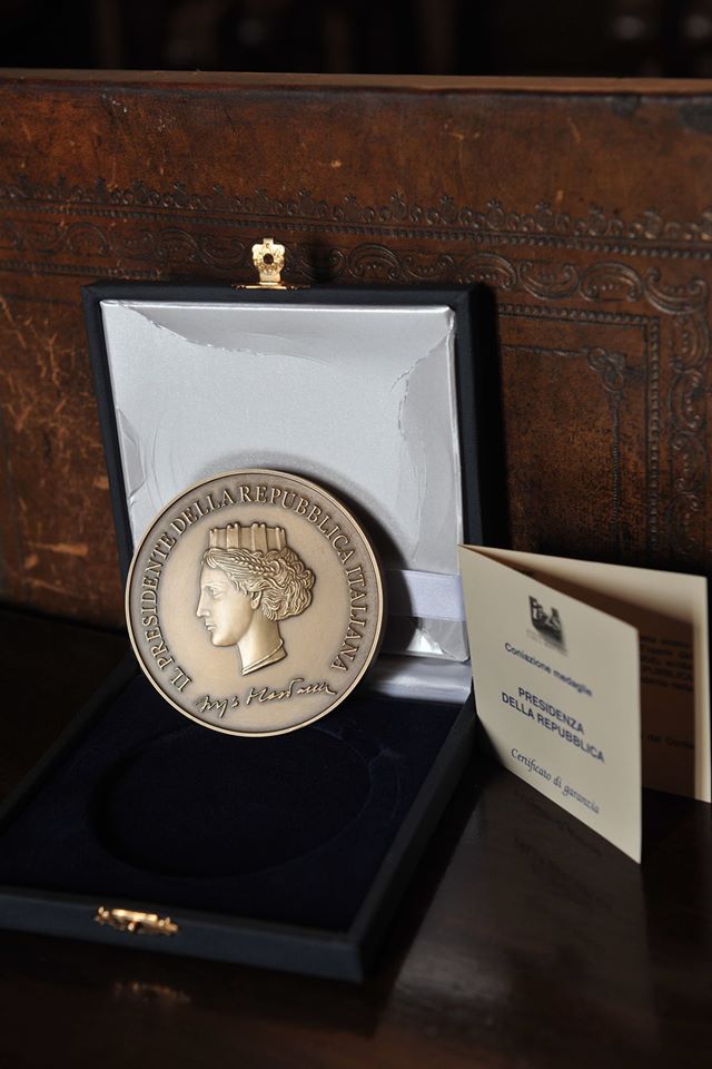 La medaglia conferita dal Presidente della Repubblica.