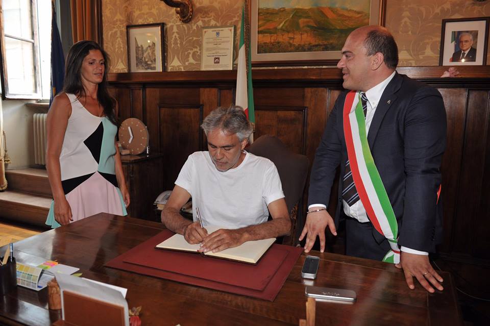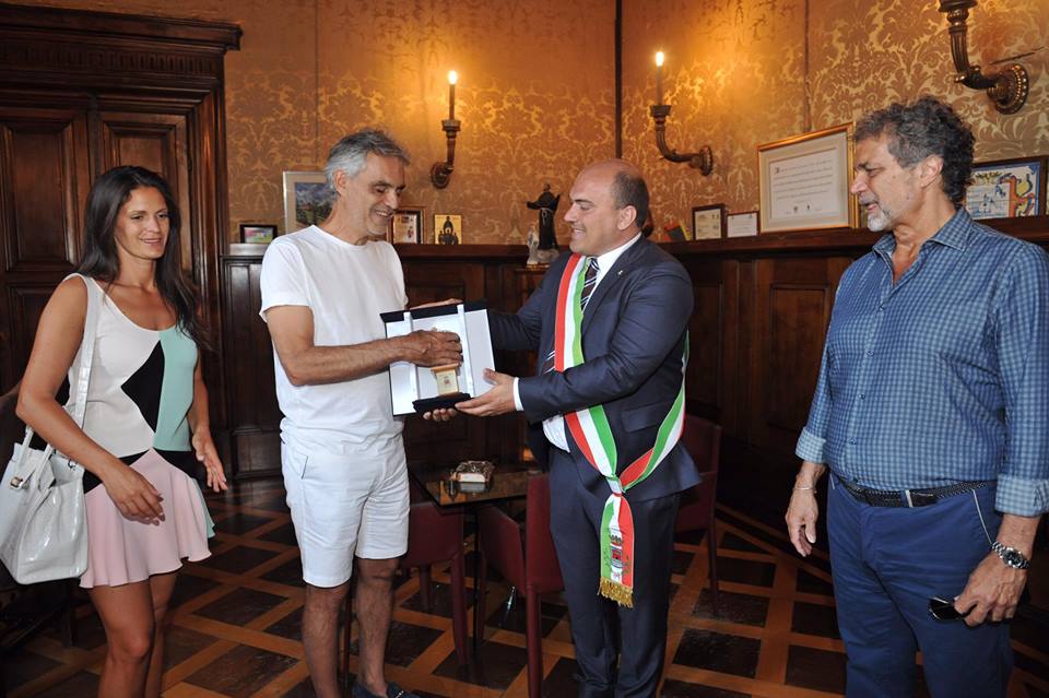 Bocelli con la Giunta Comuanale e la presidente del Consiglio Paola Andreoni.