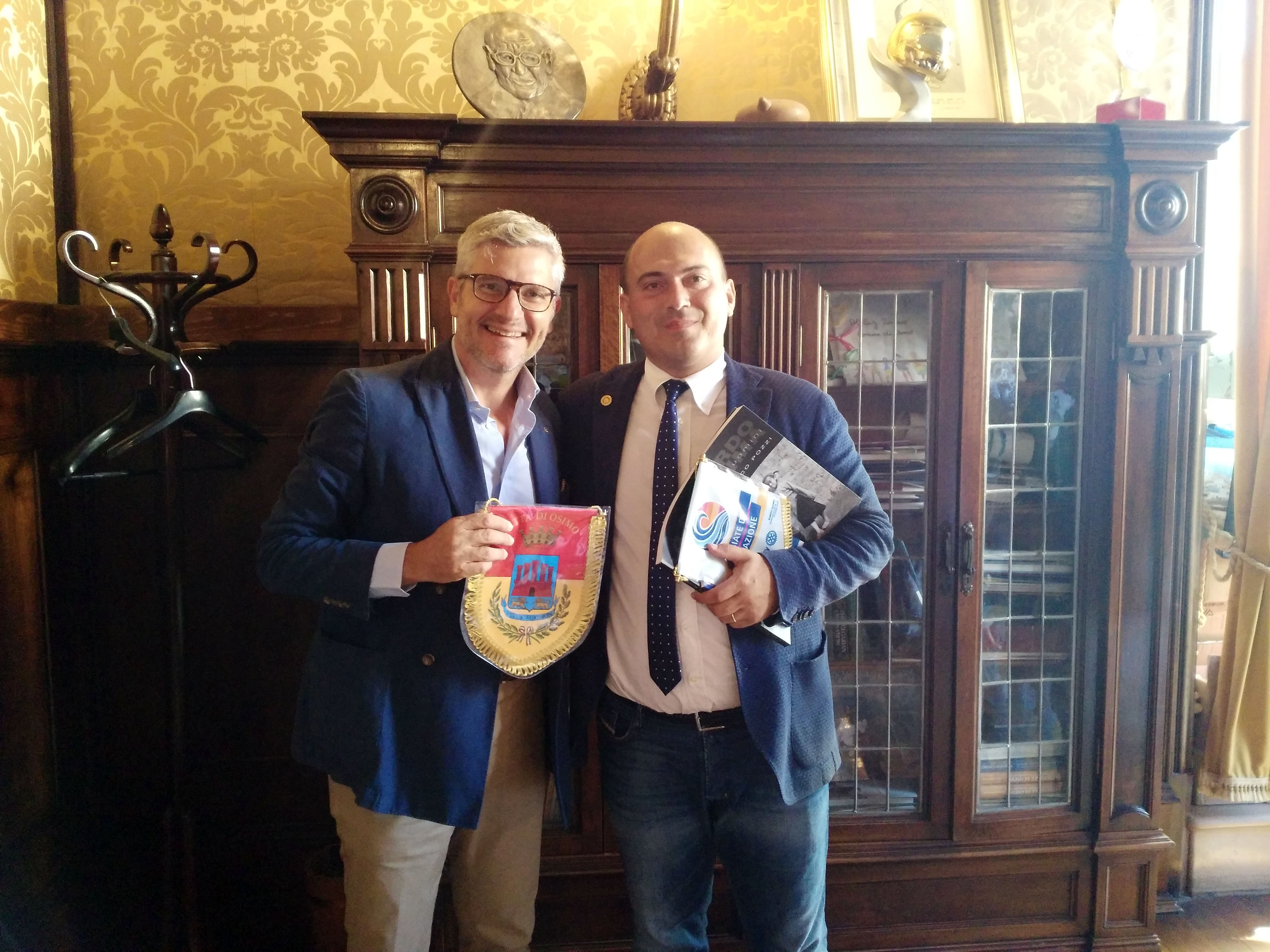 Il Governatore del Distretto Rotary 2090 Gabrio Filonzi è stato ricevuto dal sindaco Simone Pugnaloni nella mattinata dello scorso venerdì 20 luglio. Presente anche il neo Presidente del Rotary Club di Osimo Fulvio Fati Pozzodivalle assieme ad una delegazione di soci. Un incontro cordiale per riaffermare lo stretto rapporto di collaborazione con l'amministrazione comunale di Osimo, che negli ultimi anni ha visto il raggiungimento di importanti obiettivi a beneficio della collettività. Uno su tutti il progetto che ha portato Osimo ad essere la prima città cardioprotetta delle Marche, grazie al posizionamento di defibrillatori automatici esterni (DAE) in punti strategici del territorio.