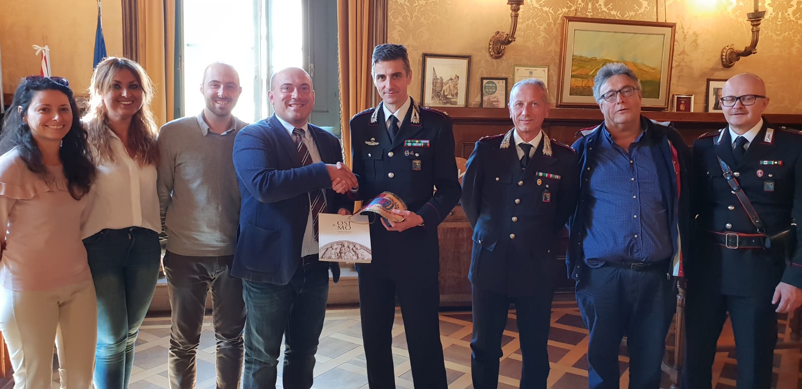 Il sindaco Simone Puganloni, a nome dell’amministrazione comunale e della città di Osimo, ha ringraziato il col. Carrozza per la vicinanza dell’Arma dei Carabinieri al territorio, omaggiandolo con il gagliardetto ufficiale della città, una medaglia con lo stemma delle cinque torri e un libro fotografico che racconta per immagini la storia di Osimo.